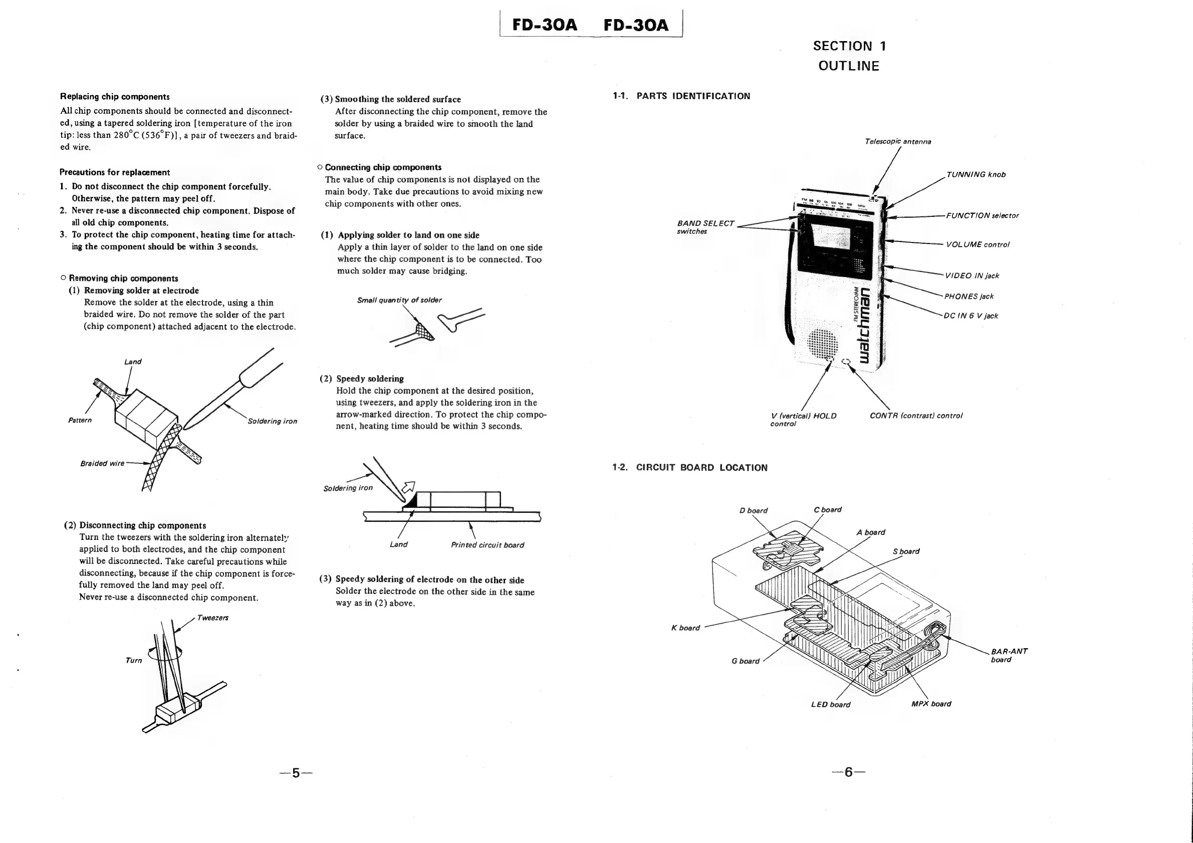 Watchman FD-30A - Chip Component Replacement; Chip Component Handling Precautions; Chip Component Connection Methods; Parts Identification and Board Layout