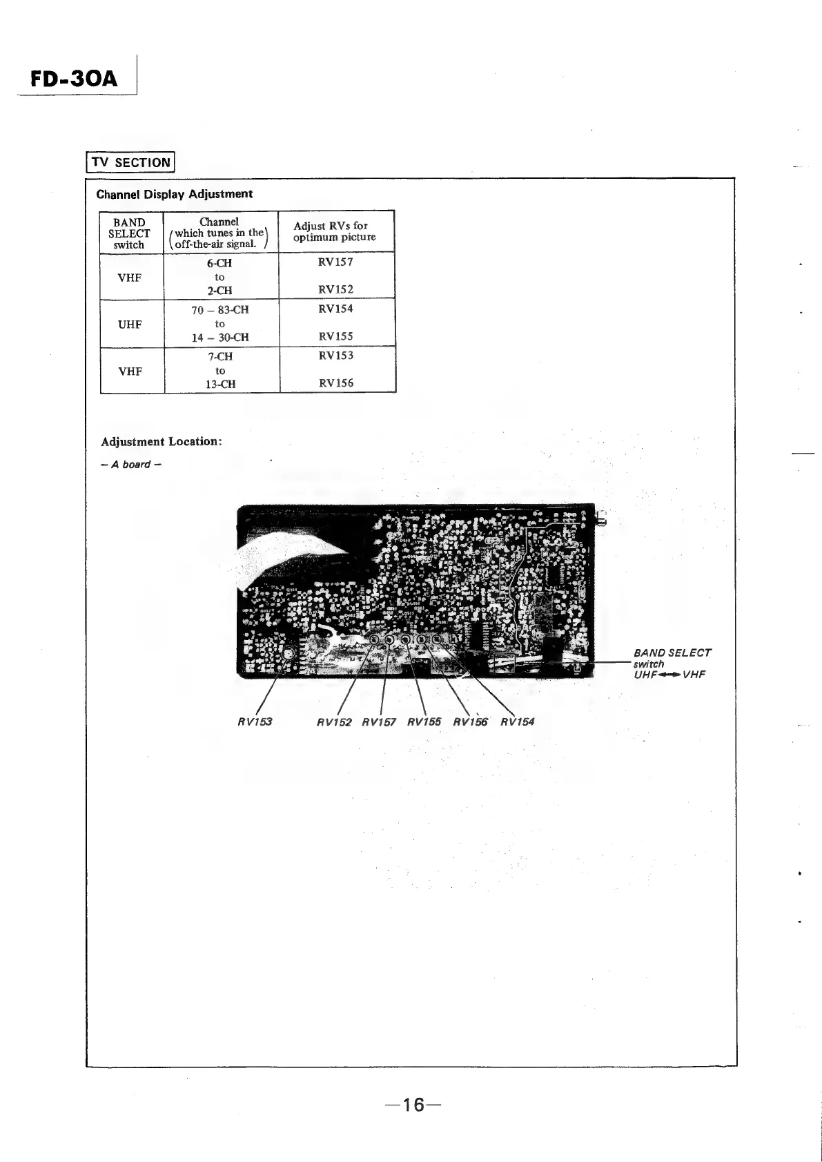 Watchman FD-30A - TV Section Adjustments; TV Channel Display Tuning