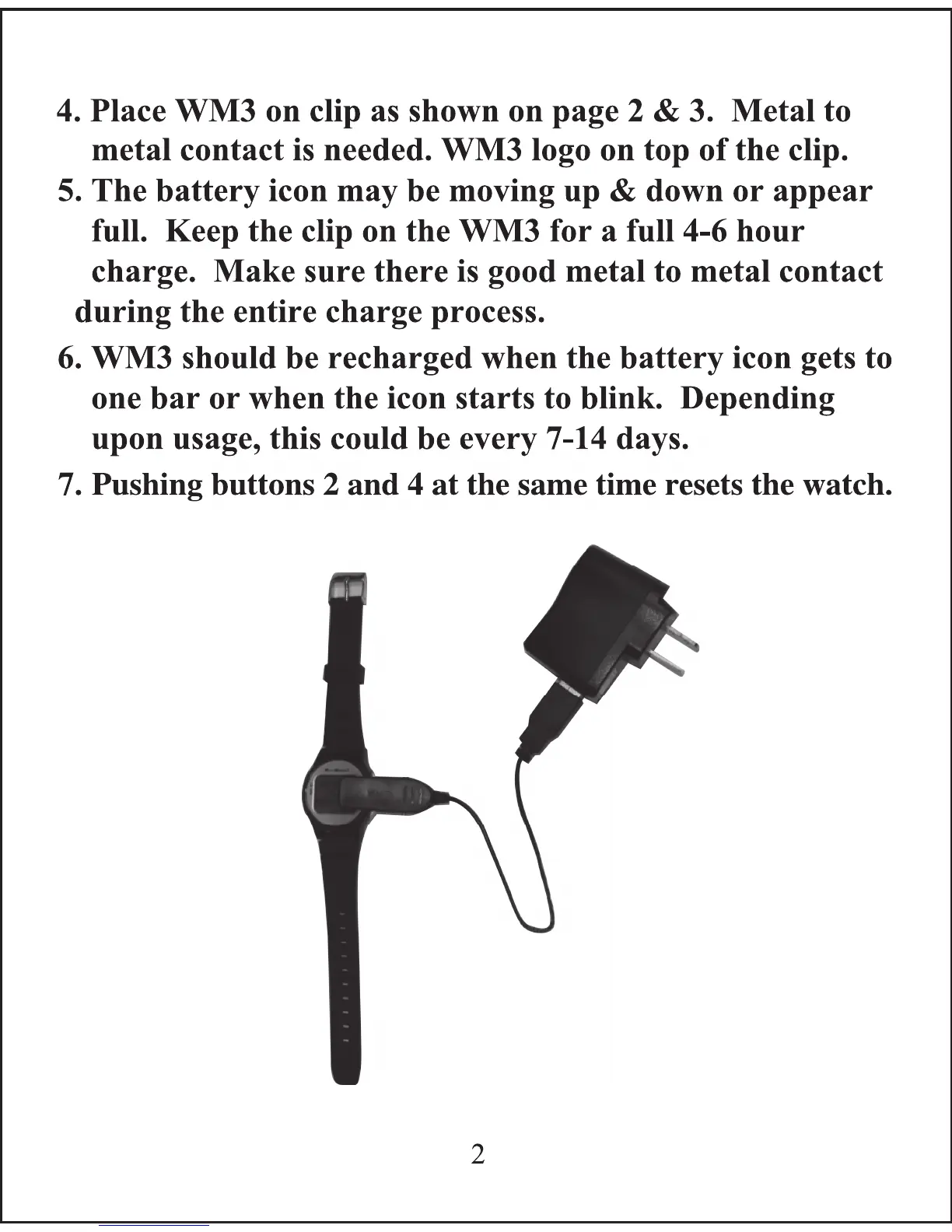 WatchMinder 3 - Charging Procedure and Reset; Charging Procedure; Recharge Indicator; Reset Function