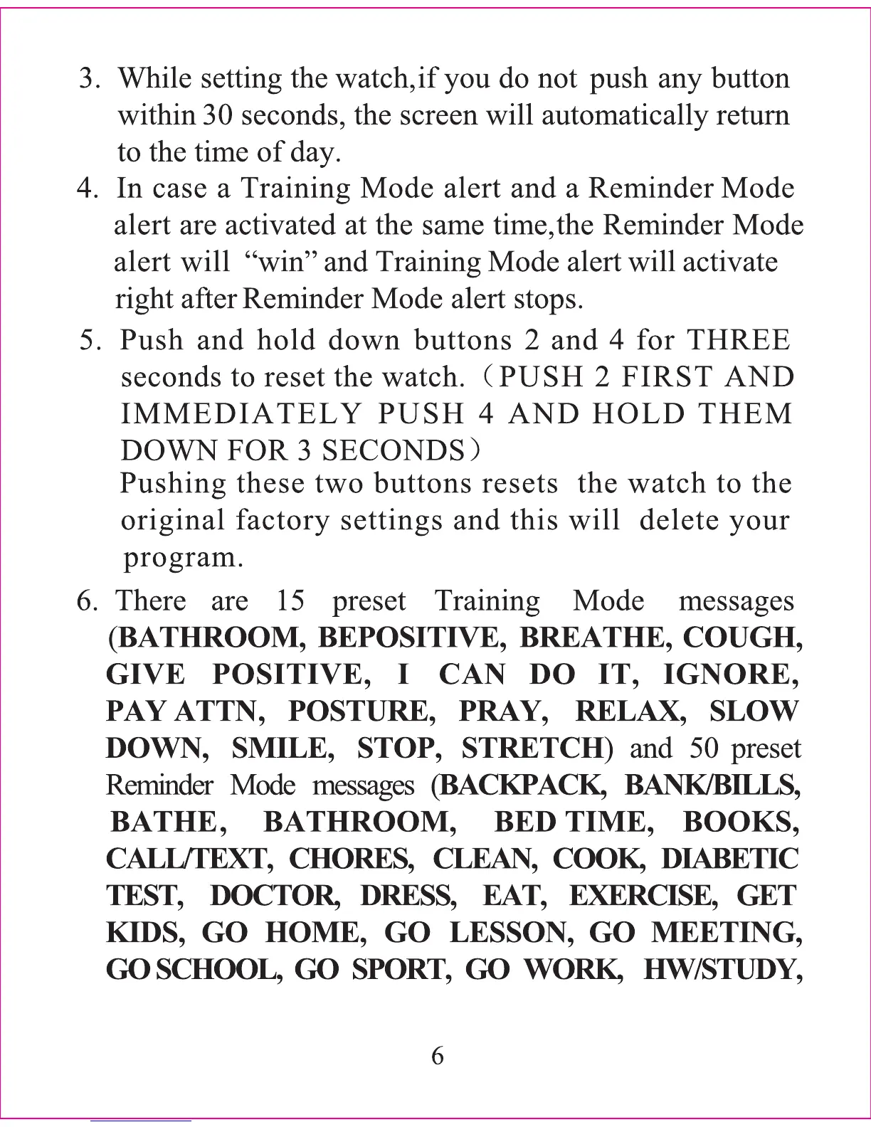 WatchMinder 3 - Alert Priority Logic; Factory Reset Procedure
