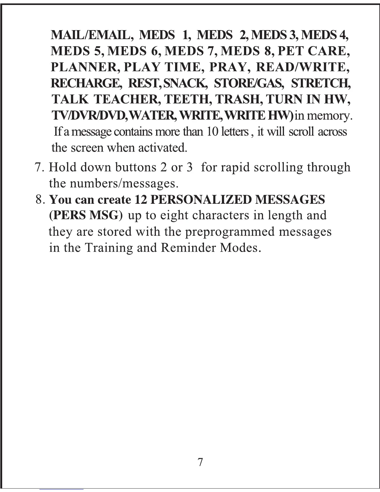 WatchMinder 3 - Rapid Scrolling Function; Personalized Message Creation