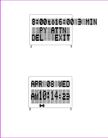 Mode setting or Push 3 to exit to time of day.