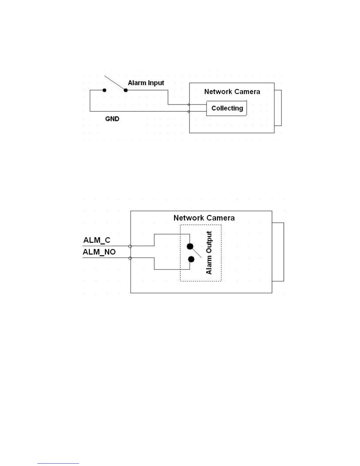 alarm input port. When the input signal is connected to the 5V or is idle, the device collects the logic “1”.