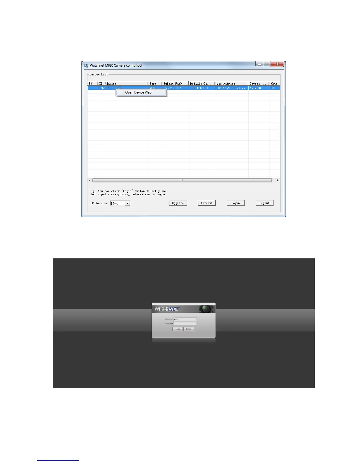 Select the Open Device Web item; you can go to the corresponding web login interface. See Figure
