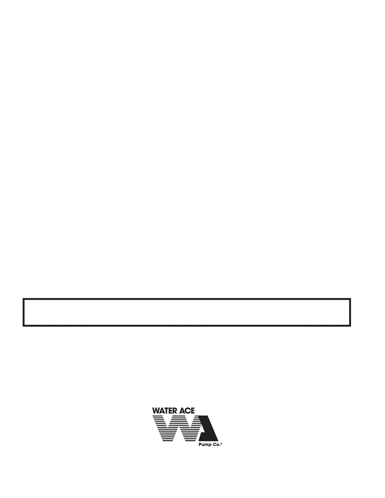 ACE PUMP CO. Contact the nearest authorized WATER ACE