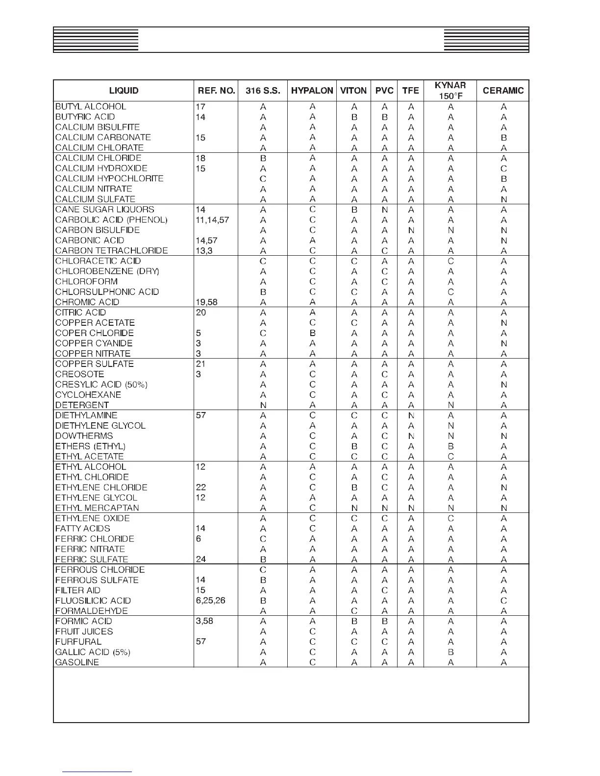 CHEMICAL COMPATIBILITY OF METERING PUMPS - PERFORMANCE