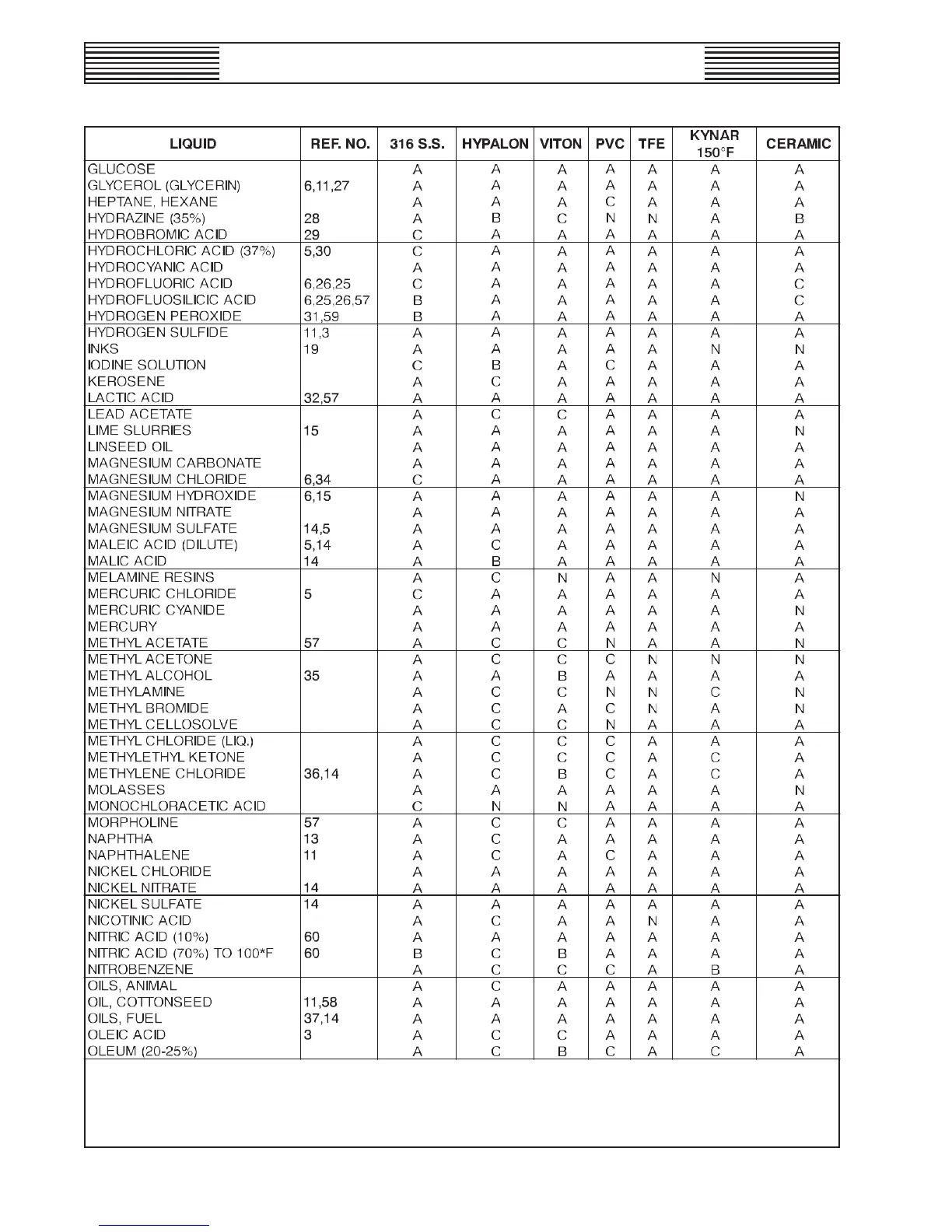 CHEMICAL COMPATIBILITY OF METERING PUMPS - PERFORMANCE