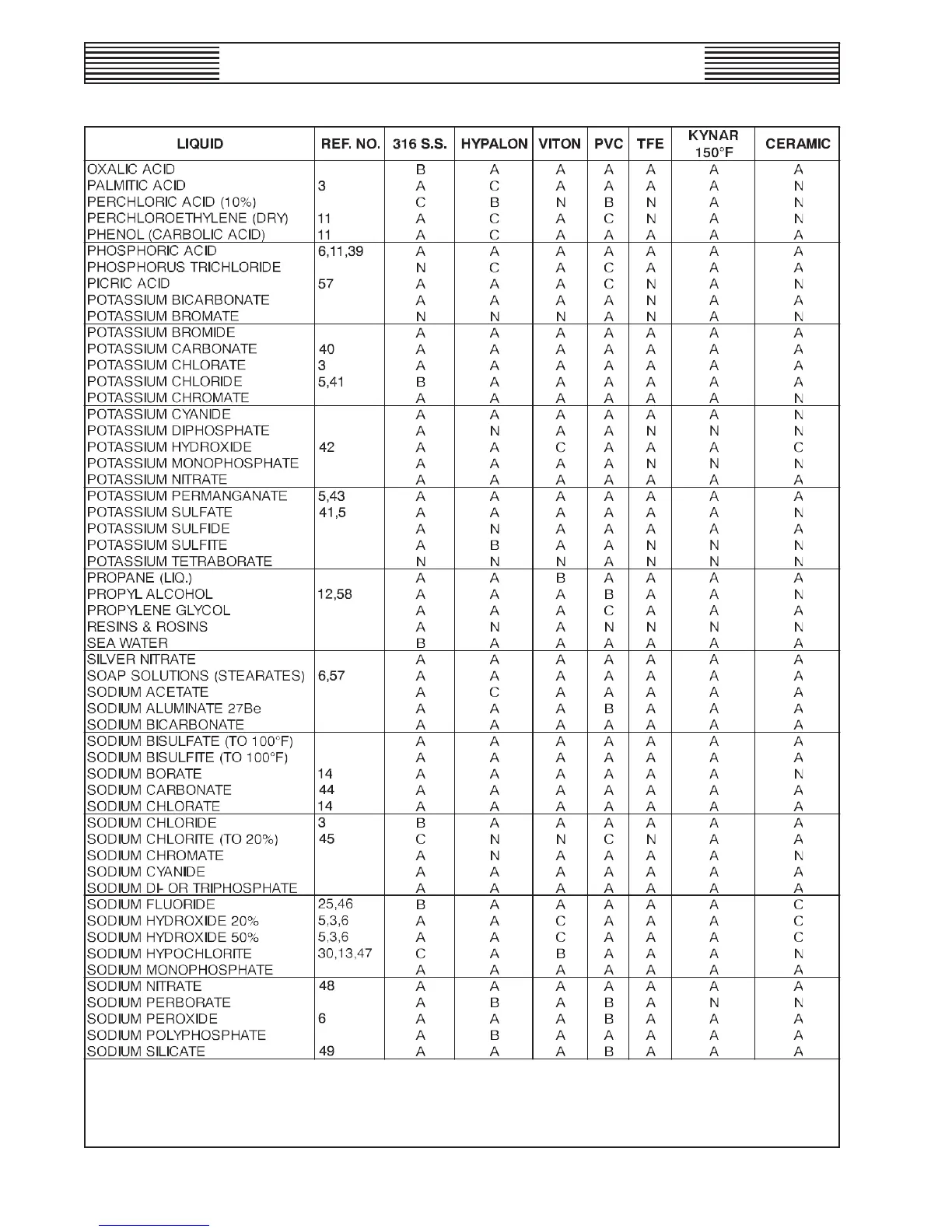 CHEMICAL COMPATIBILITY OF METERING PUMPS - PERFORMANCE