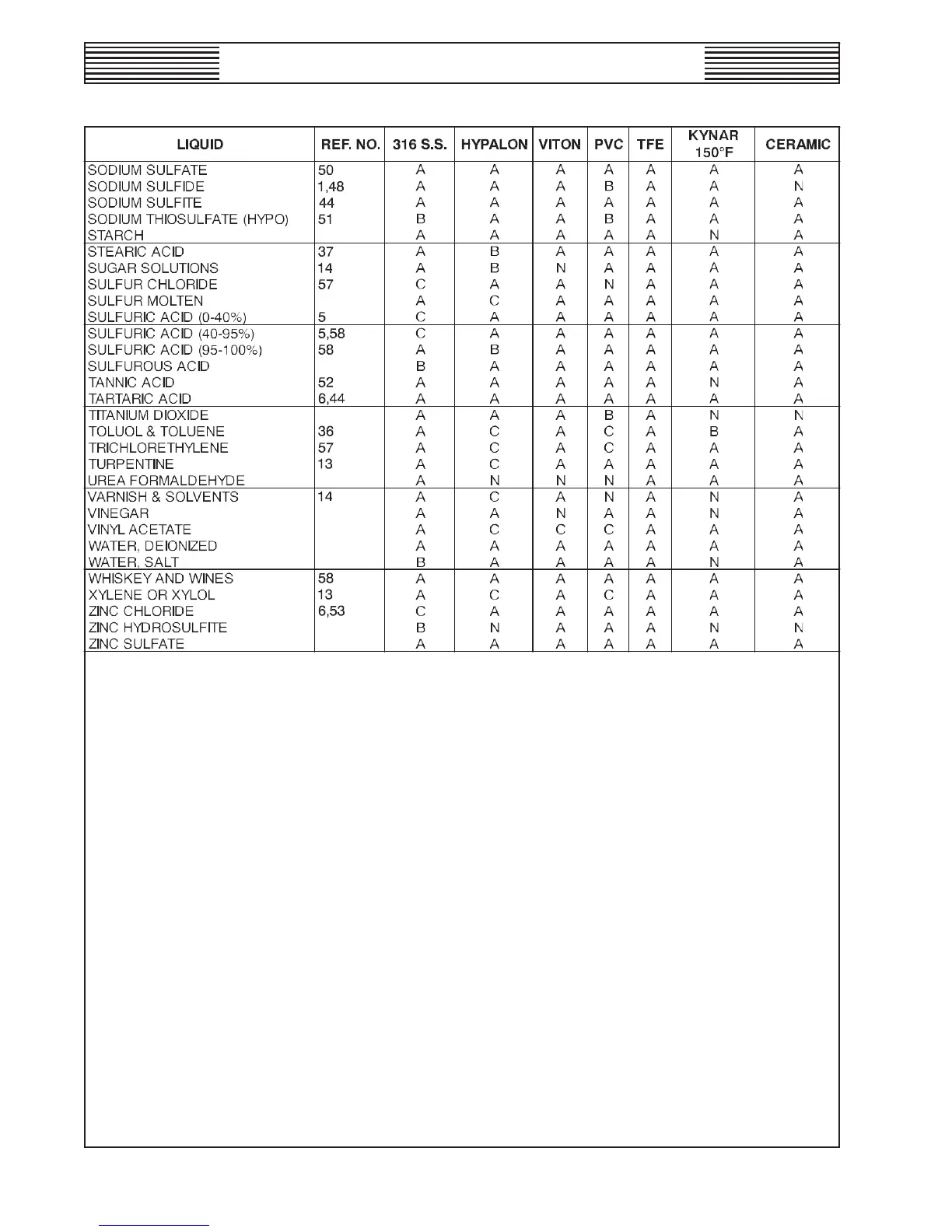 CHEMICAL COMPATIBILITY OF METERING PUMPS - PERFORMANCE