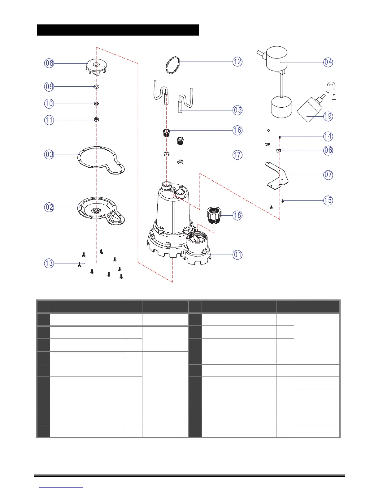 SUMP PUMP SPARE PARTS LIST: