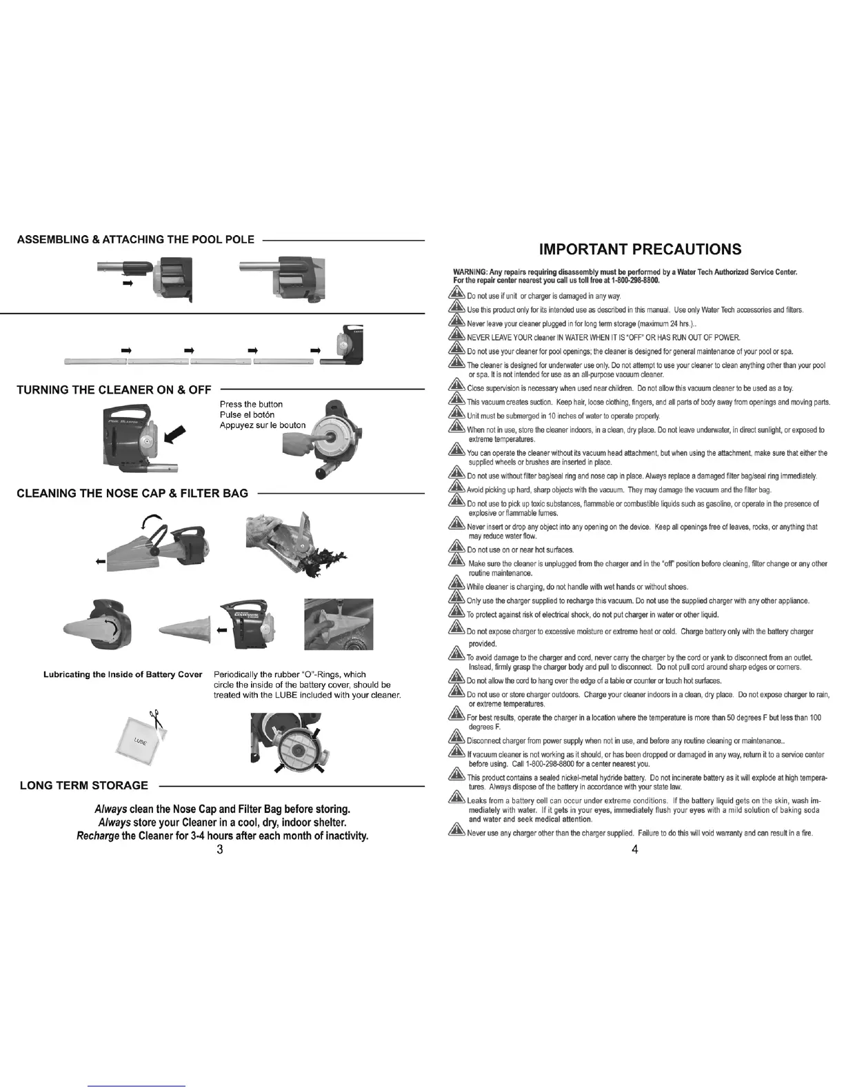 Water Tech Pool Blaster Centennial - Operational and Maintenance Procedures; Pool Pole Assembly and Attachment; Turning the Cleaner On and Off; Cleaning Nose Cap and Filter Bag