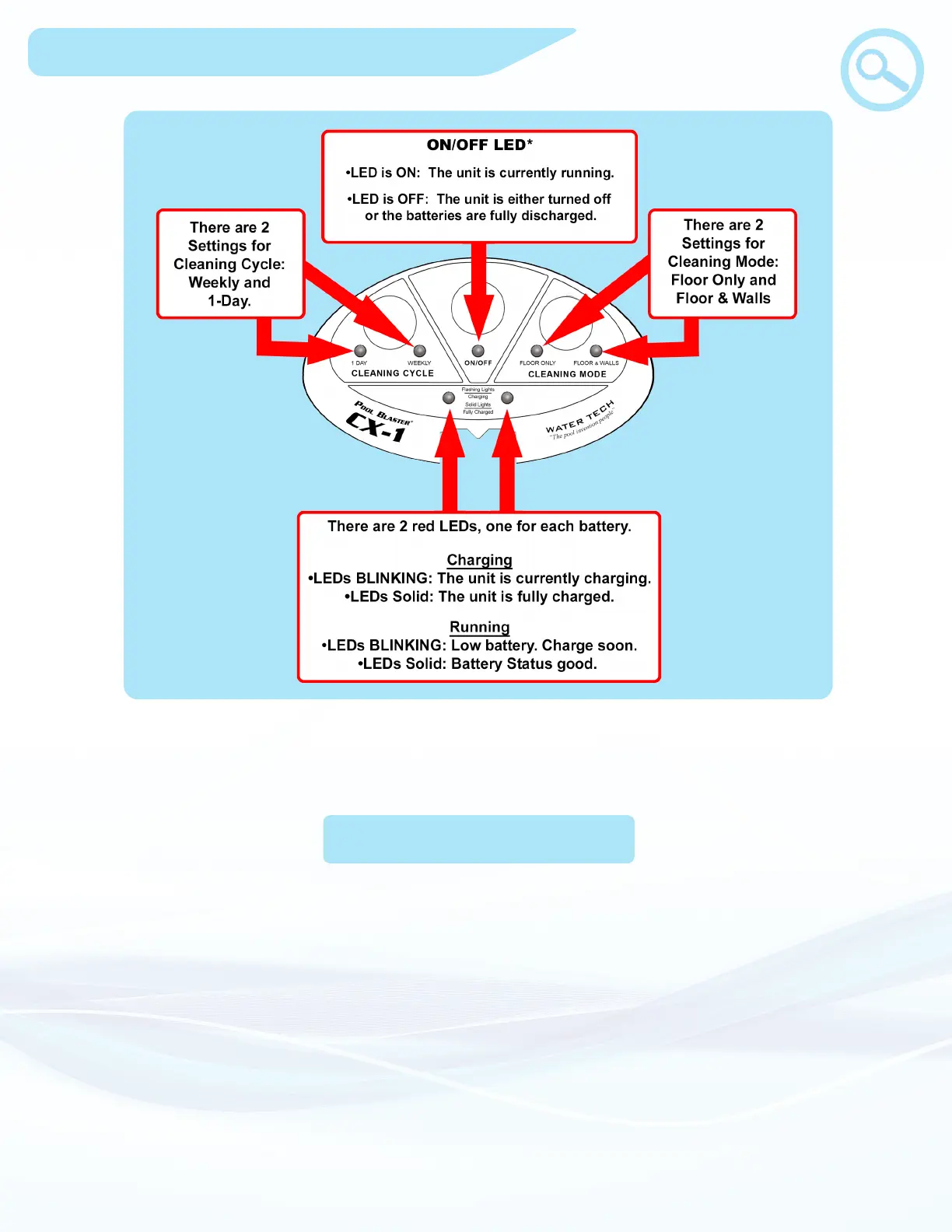 pools or pools with steps. If the CX-1 is out of water for too long, it will shut itself down (with the LEDs