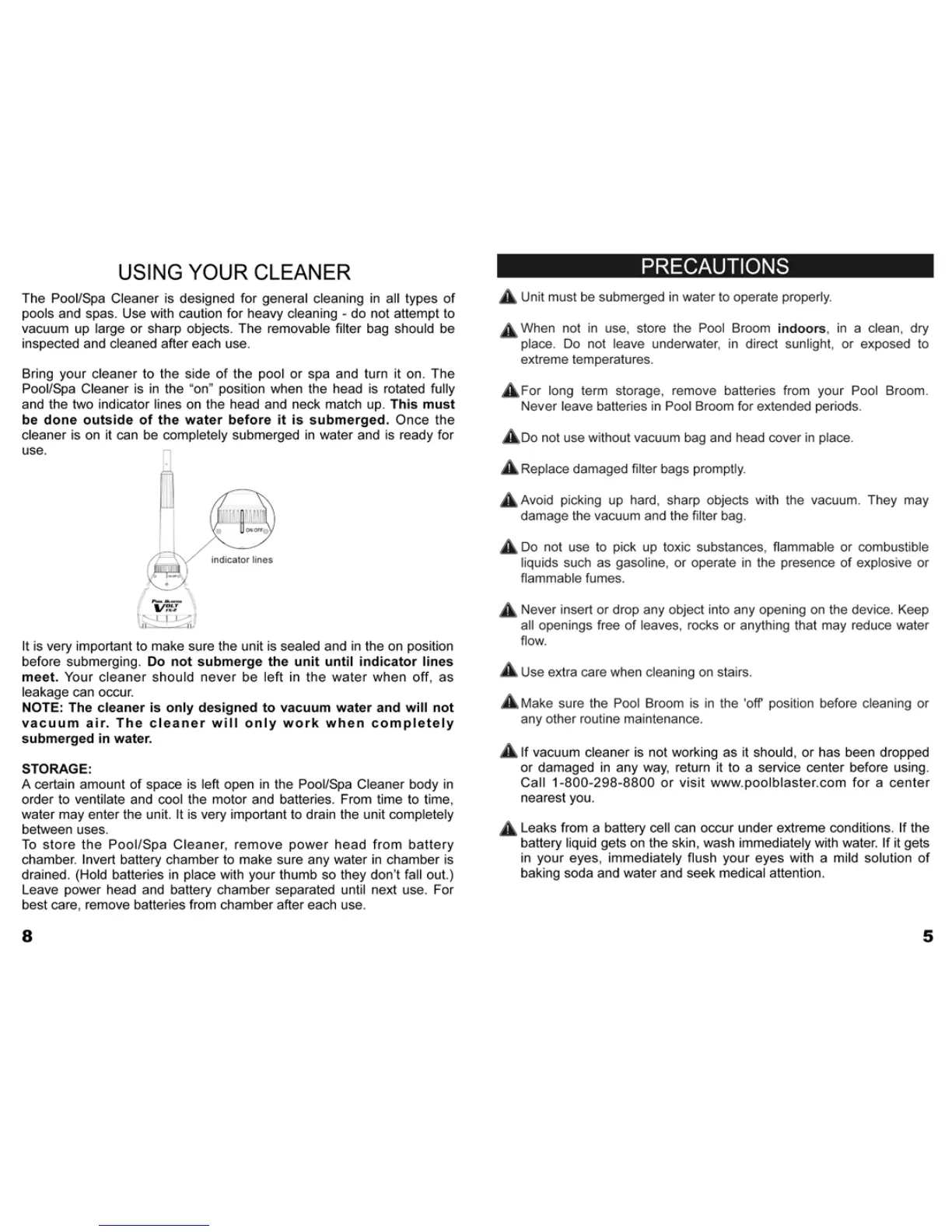 Water Tech Pool Blaster Volt FX-2 - Using Your Cleaner; Storage; Precautions