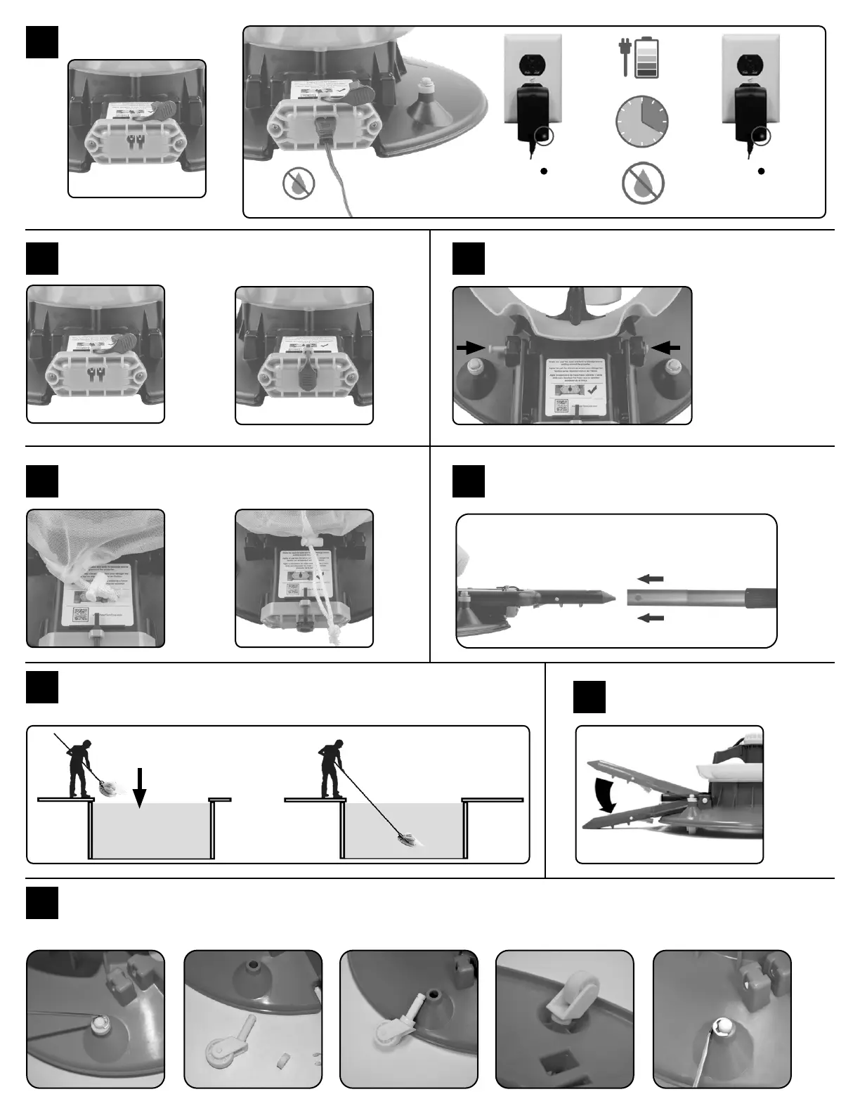Fixation du sac ltrant Insertion du pôle de piscine (Non inclus)