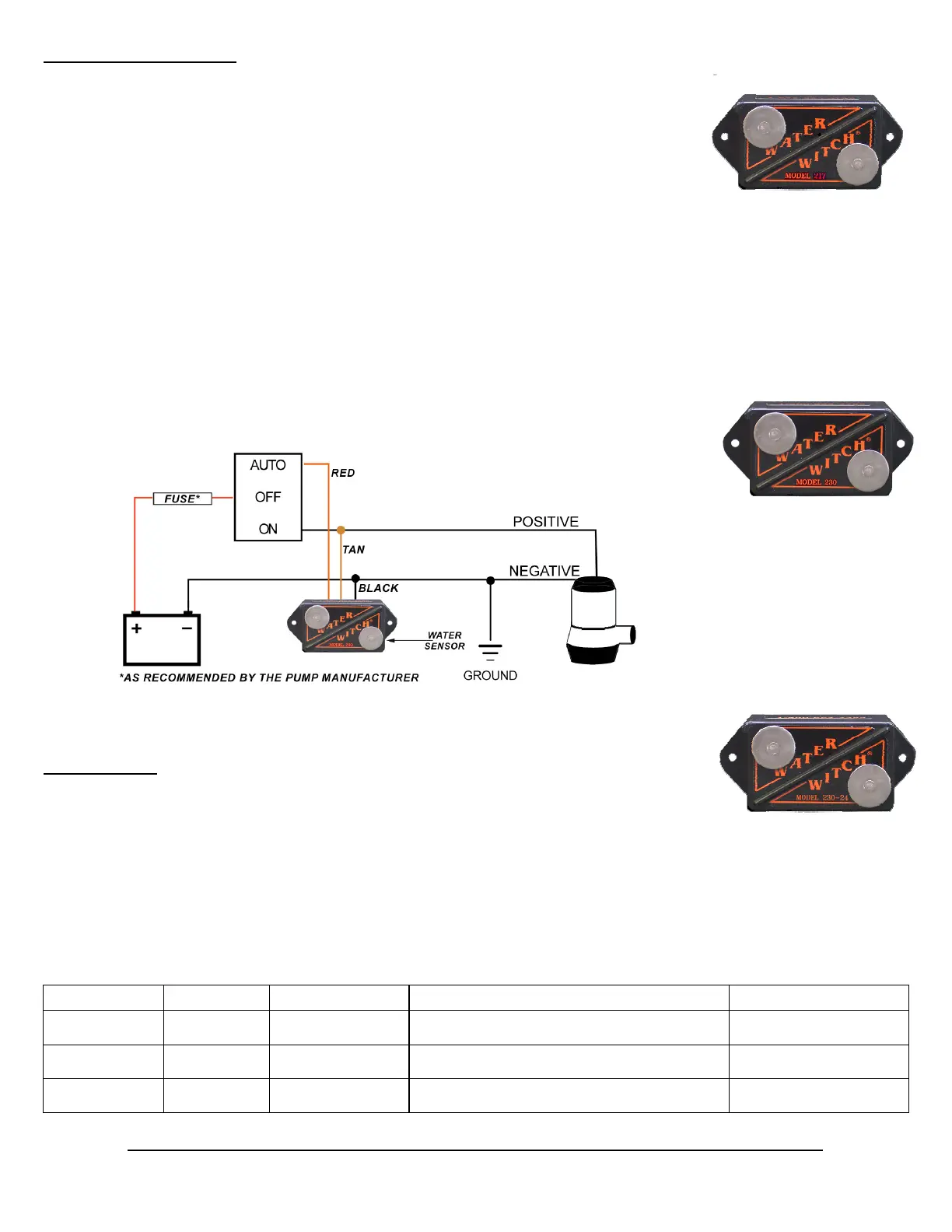2. Select a mounting location for the Water Witch; the water sensor, the lower sen-