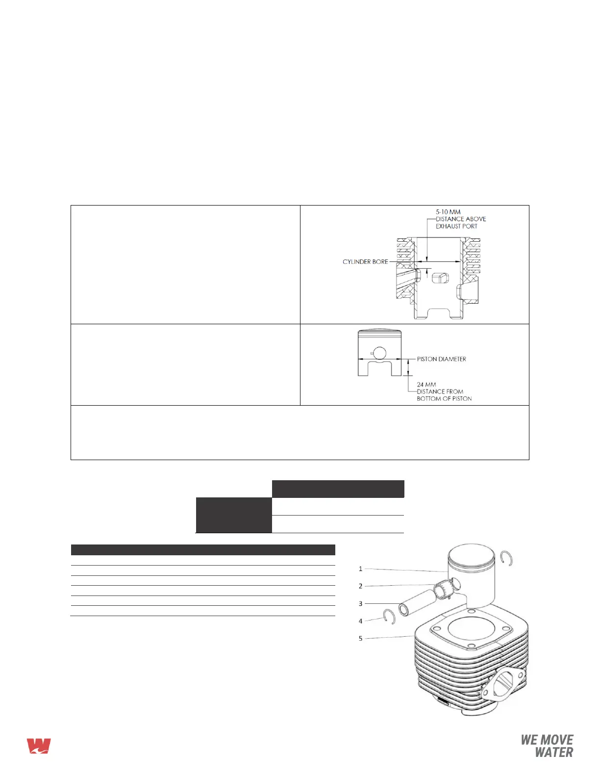 diameter. See the table below for instructions on how to measure the cylinder bore and piston diameter: