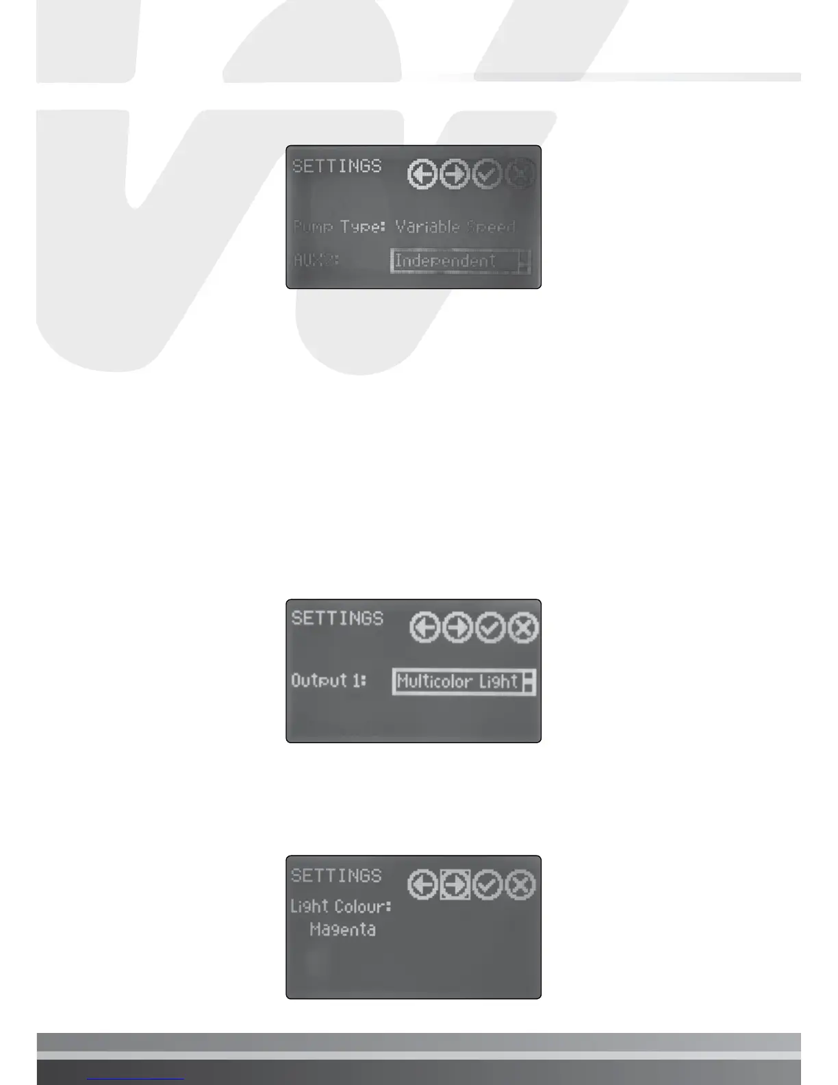 selection of the light colour. This function only works with Waterco