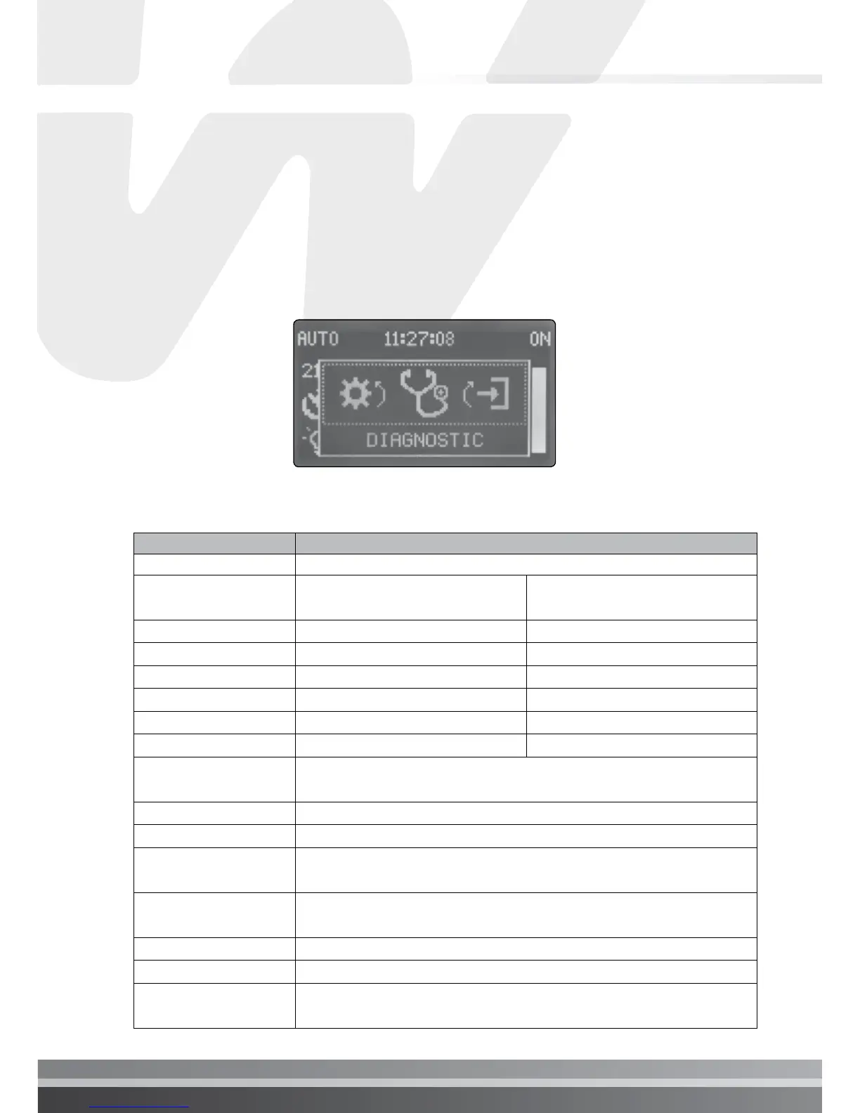 The diagnostic menu allows the user to quickly evaluate the current state of