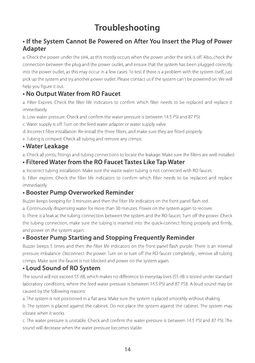 pressureimbalance:Disconnect the power.Turn on or turn off the ROfaucet completely , remove all tubing