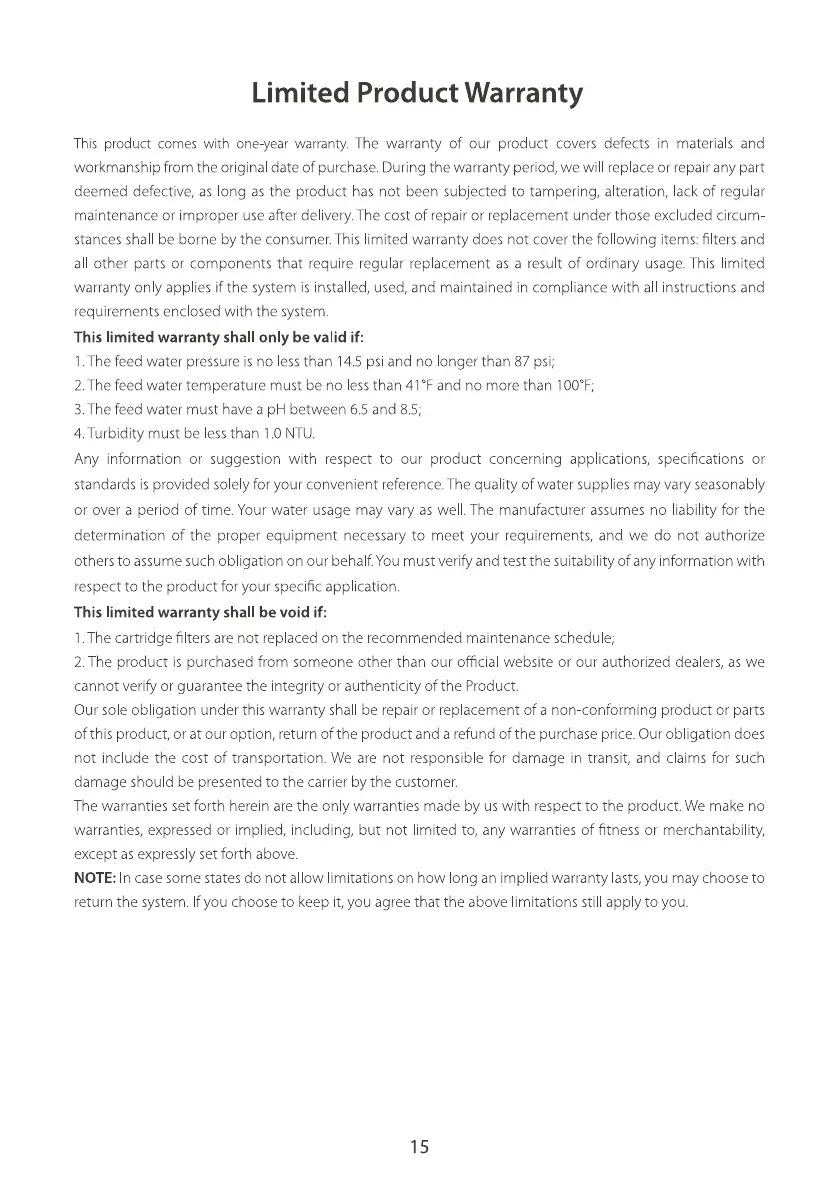 stancesshall be borne by the consumer.This limited warranty does not cover the following items: filters and