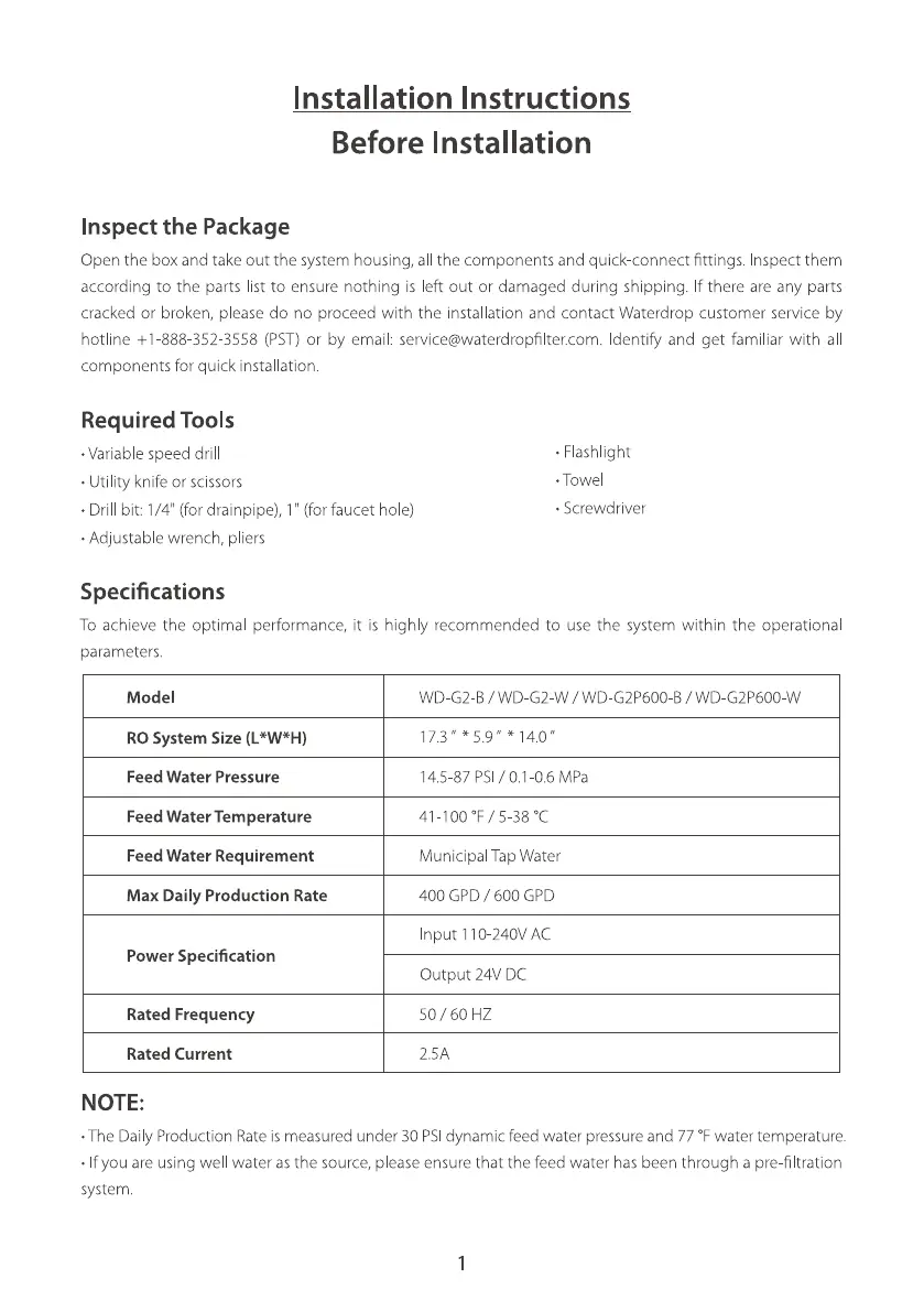 cracked or broken, please do no proceed with the installation and contact Waterdrop customer service by