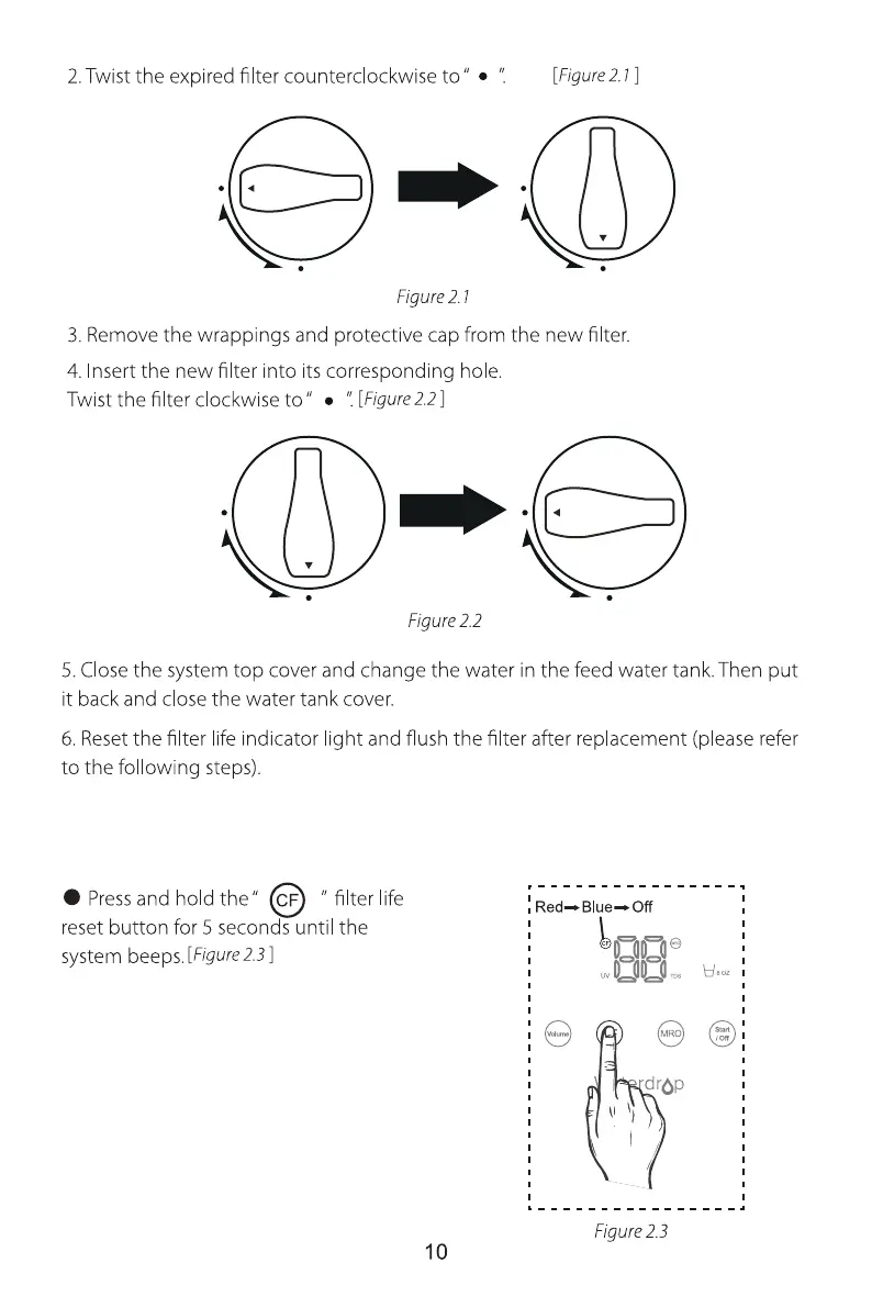 b. How to reset the filter life indicator light (resetting the CF filter life