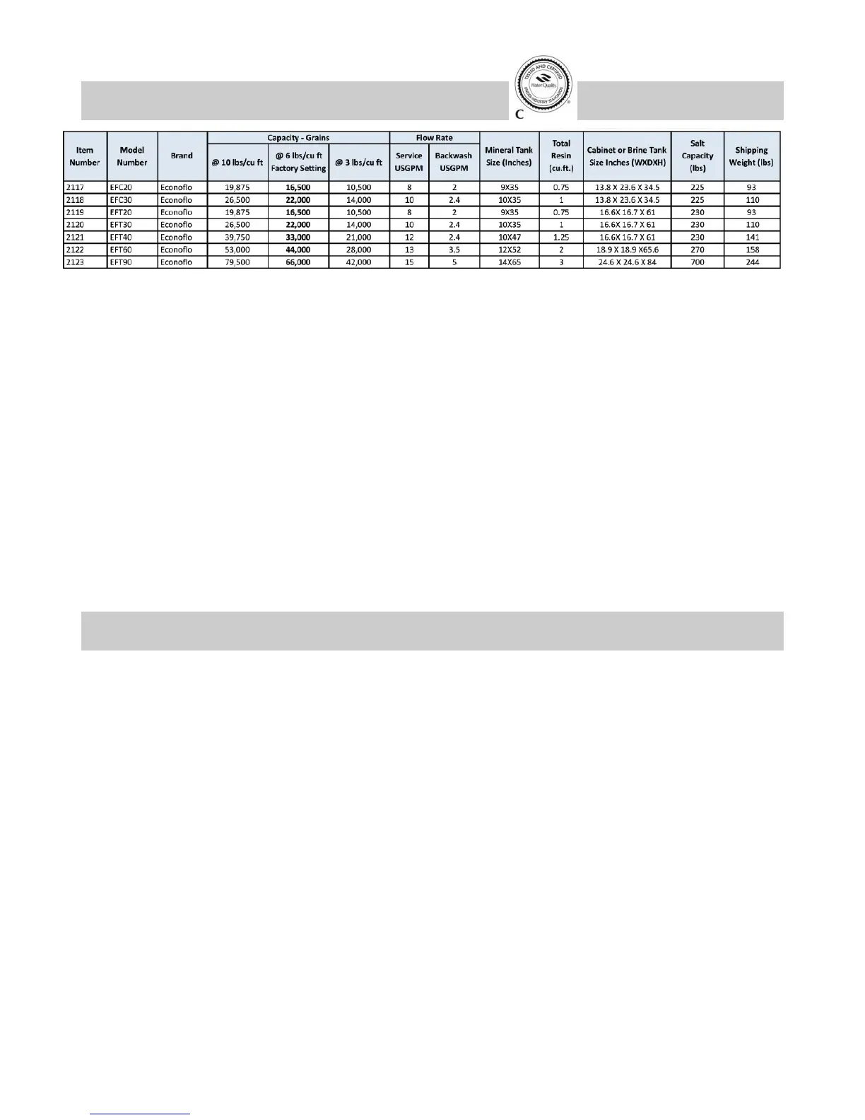 Units contain 8% Super Capacity Ion Exchange Resin