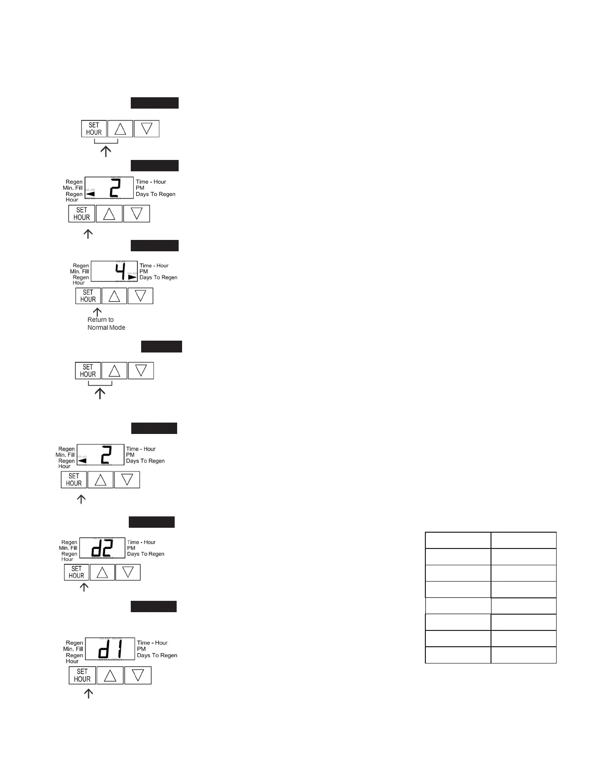 STEP 2ID – Regeneration Time: Set the clock to the hour the regeneration should occur