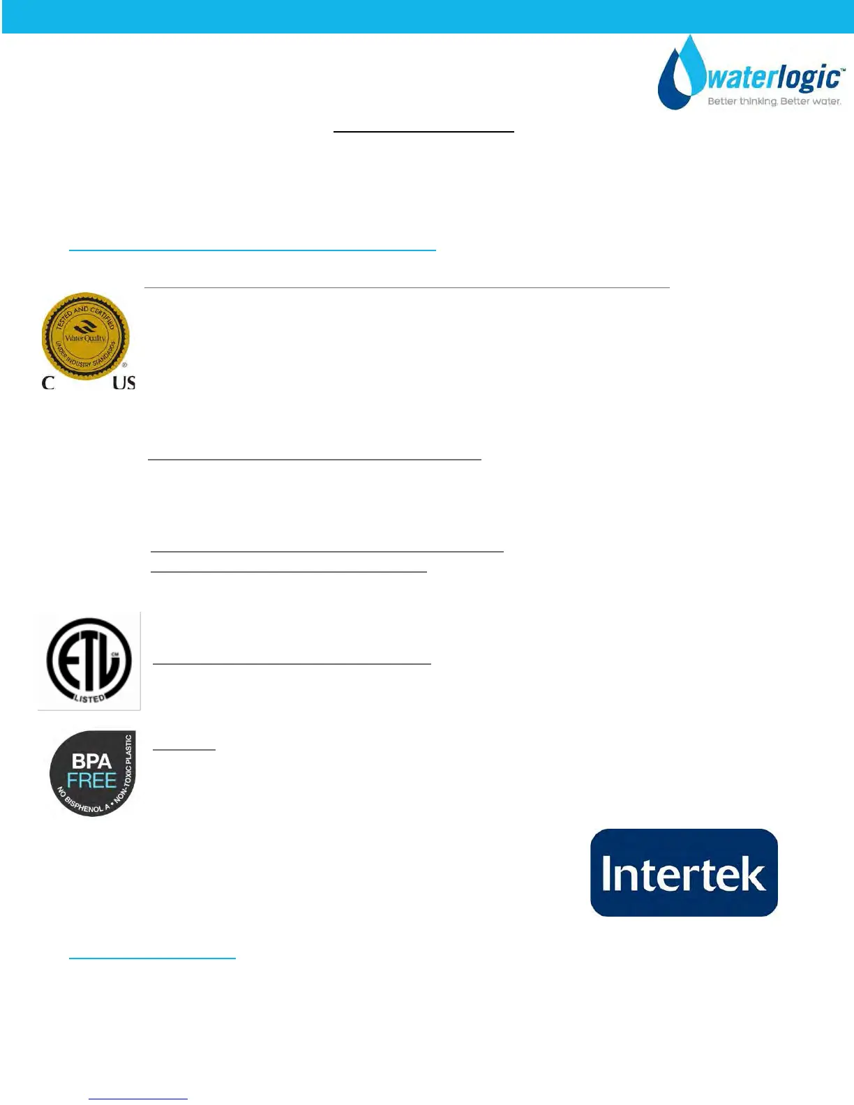 Waterlogic Water Treatment Systems have been tested, and certified to rigorous NSF and UL