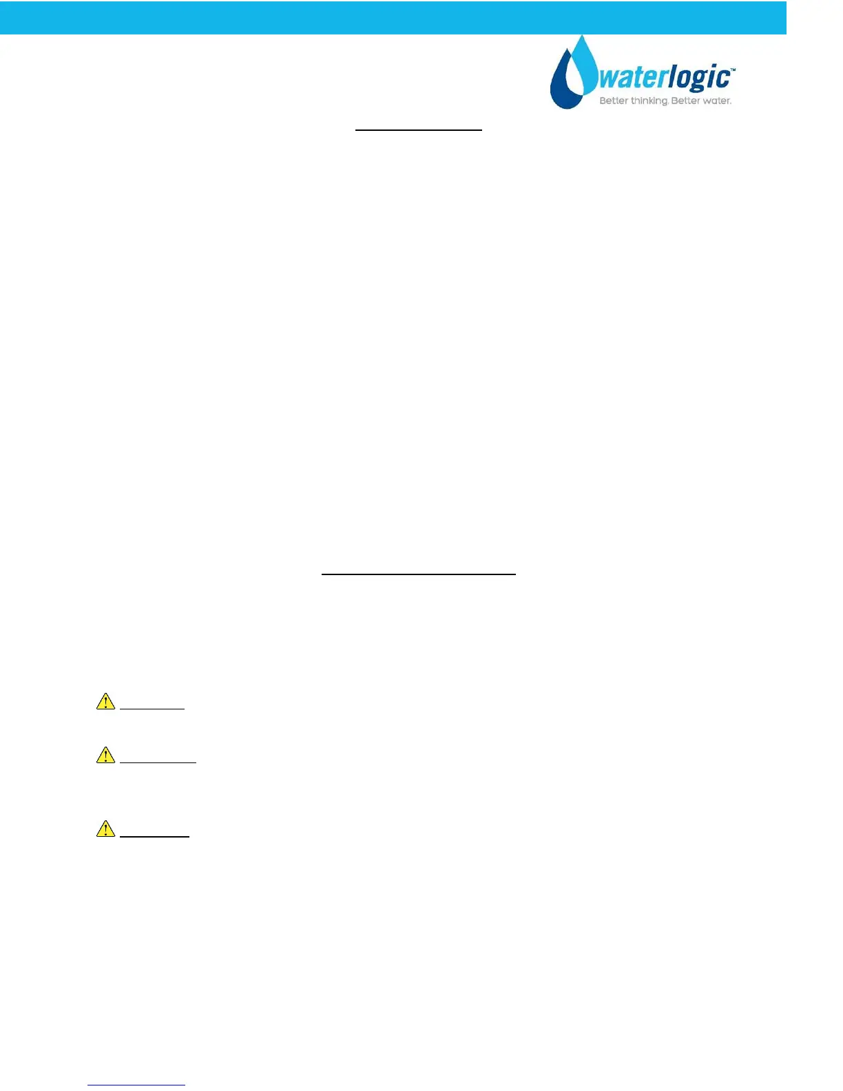 without prior notice. Changes or modifications not expressly approved by Waterlogic could void the