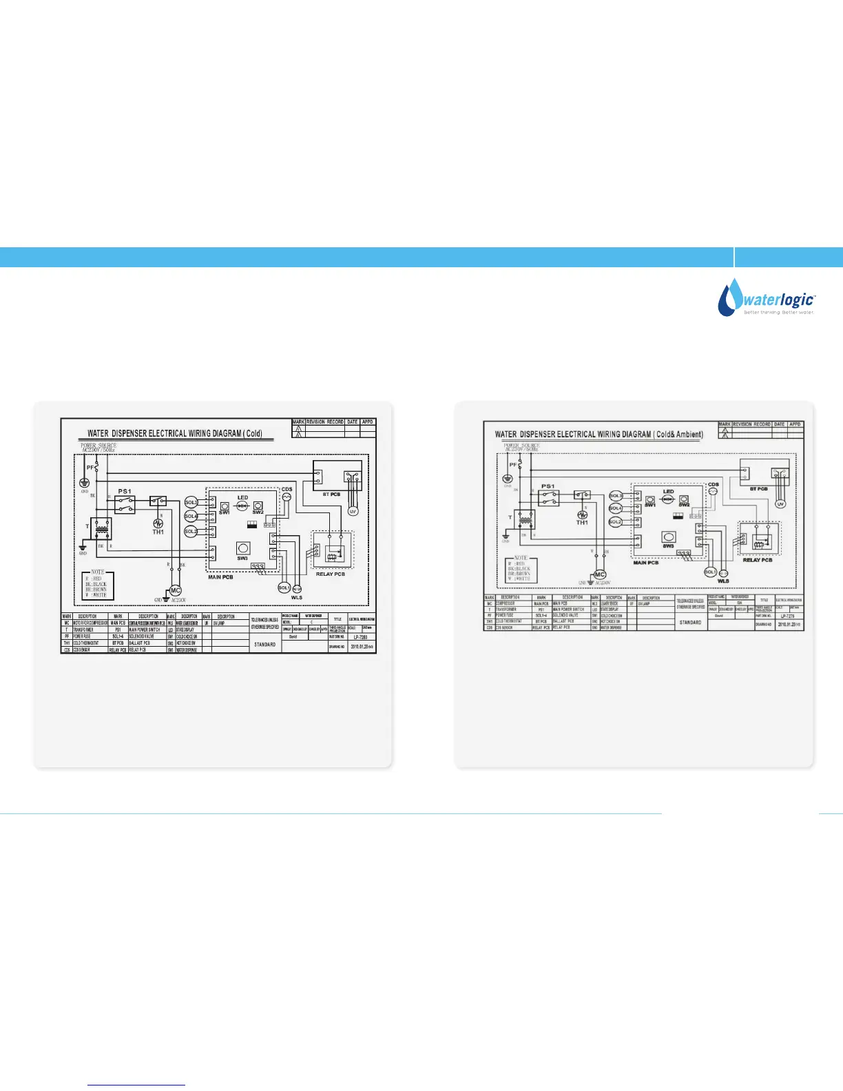 WaterLogic WL2 Firewall - Electrical Wiring Diagrams; Cold Only 230 V Model Schematic; Cold and Ambient 230 V Model Schematic