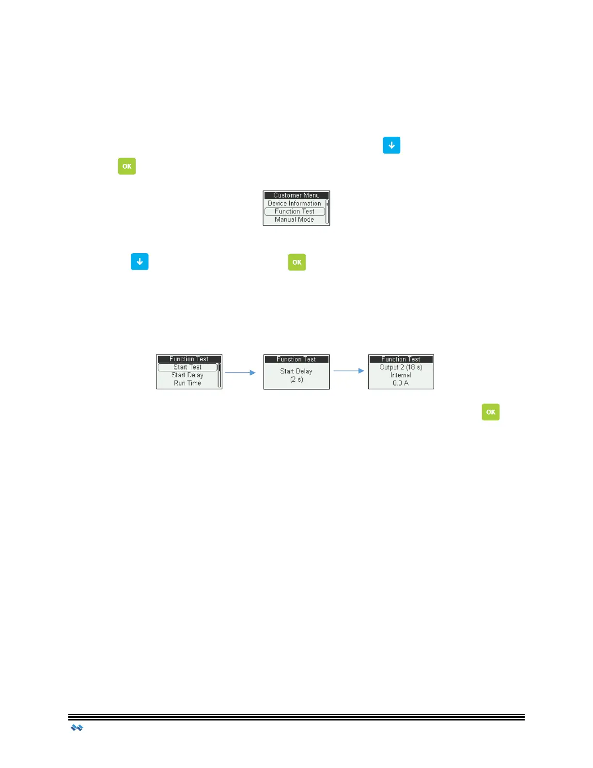 Once the user has accessed the Customer Menu, scroll Down to Function Test and