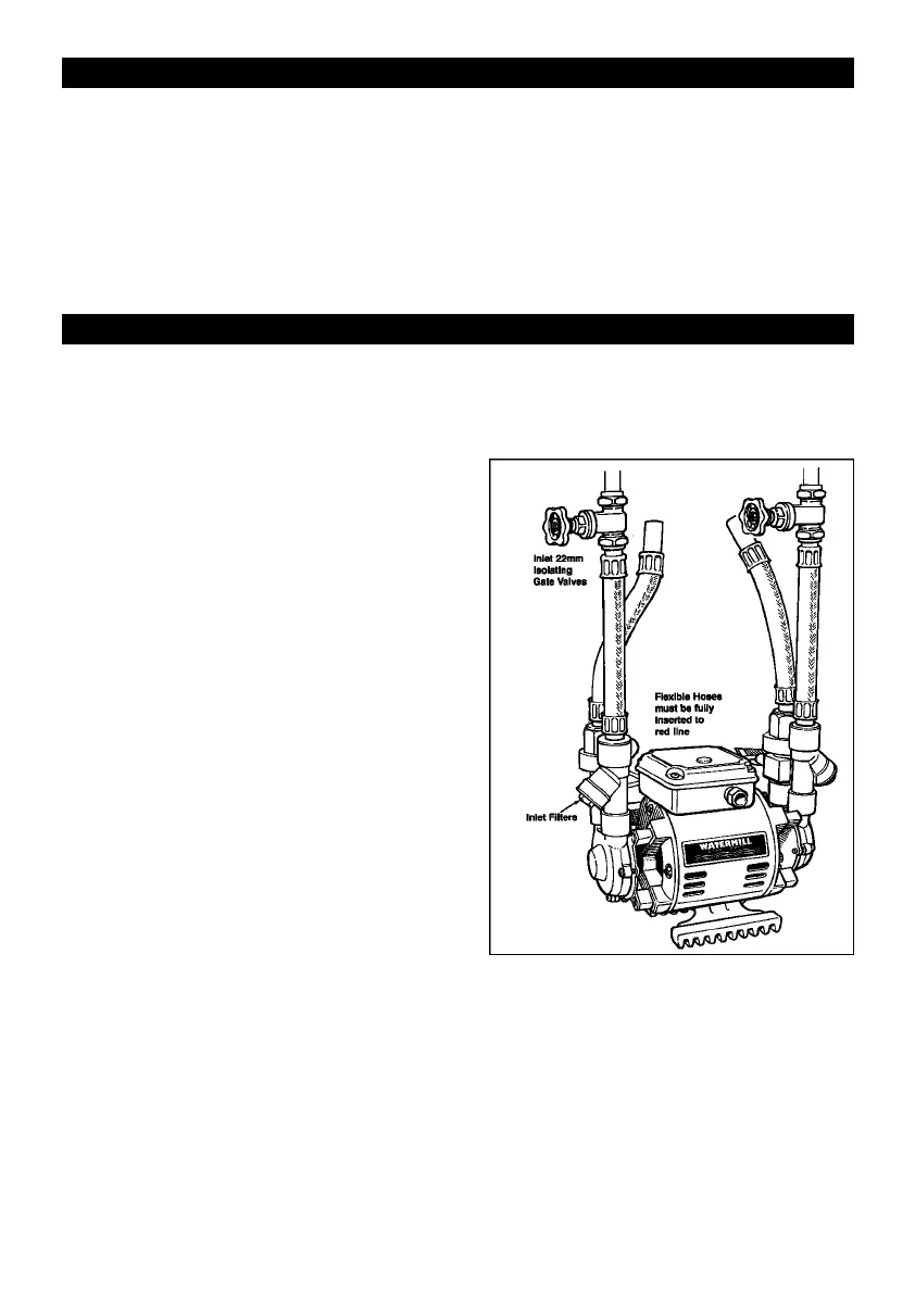 Line up pipework and fit hoses to pump before connecting to pipes. Position pipework