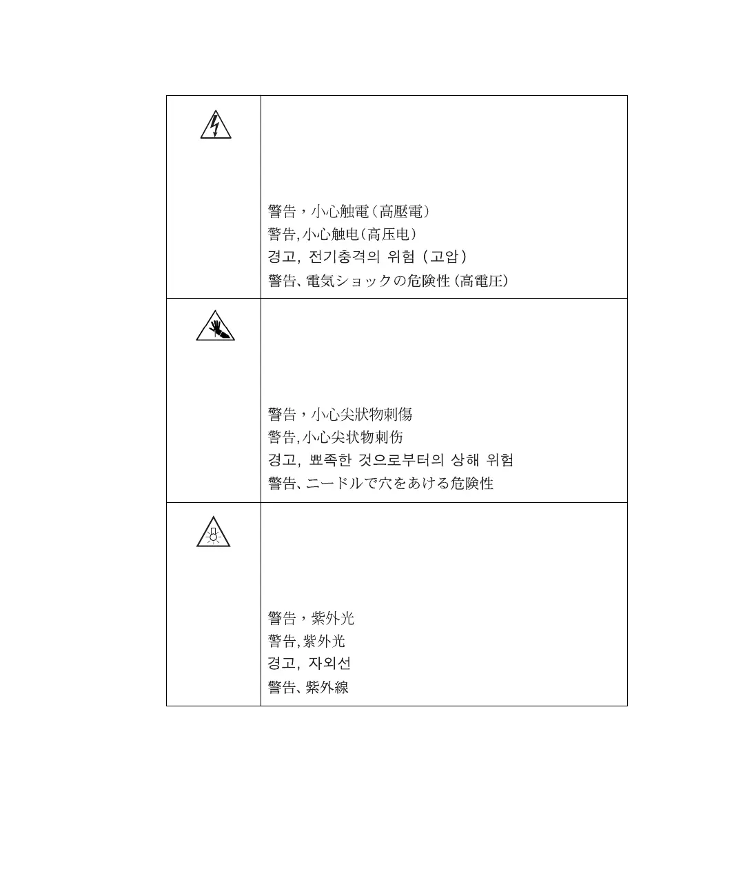 Caution, risk of electric shock (high voltage)