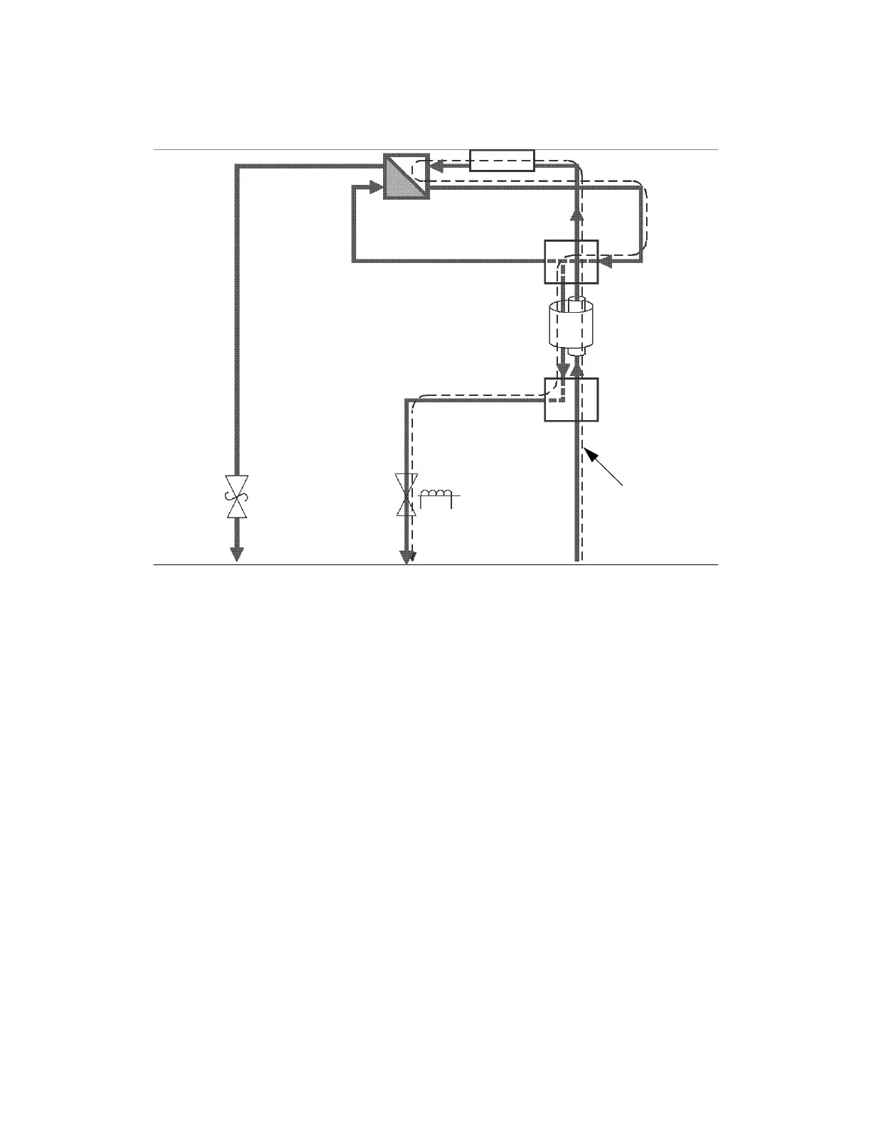 5. Flows out to the cross fitting, bypassing the countercurrent heat exchanger.