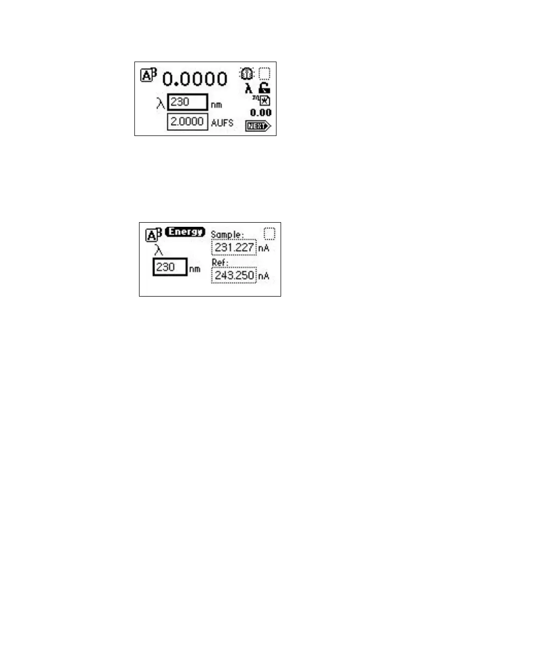1. On the absorbance screen, use the arrow keys to highlight the λ field.