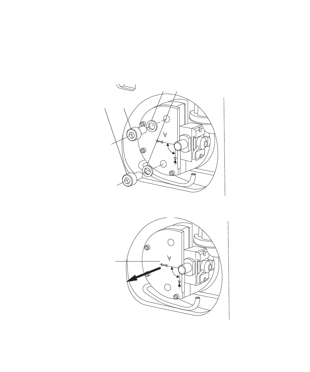 6. Use the 6-mm Allen wrench to unscrew and remove the 2 ion block