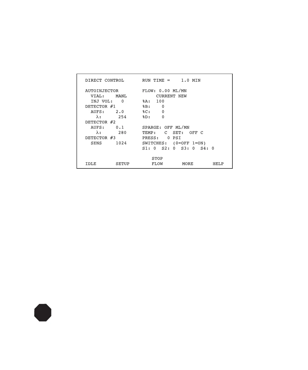 You set the run conditions from the Direct Control screen. To access the Direct Control