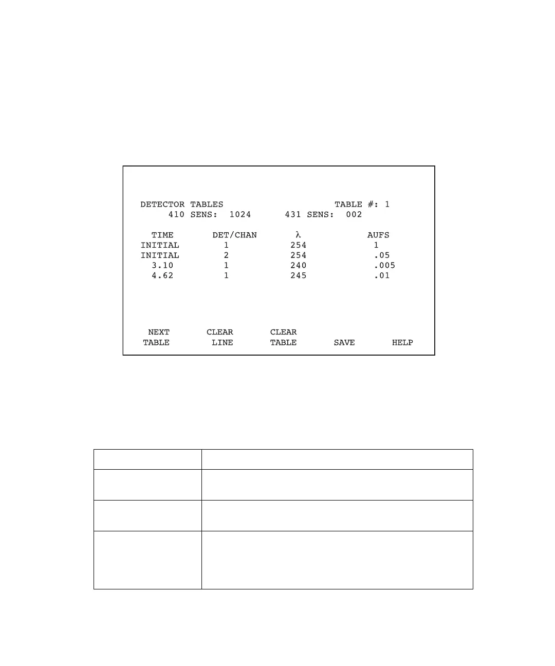 Detector Tables screen. These screen keys have the functions described in Table 6-4.
