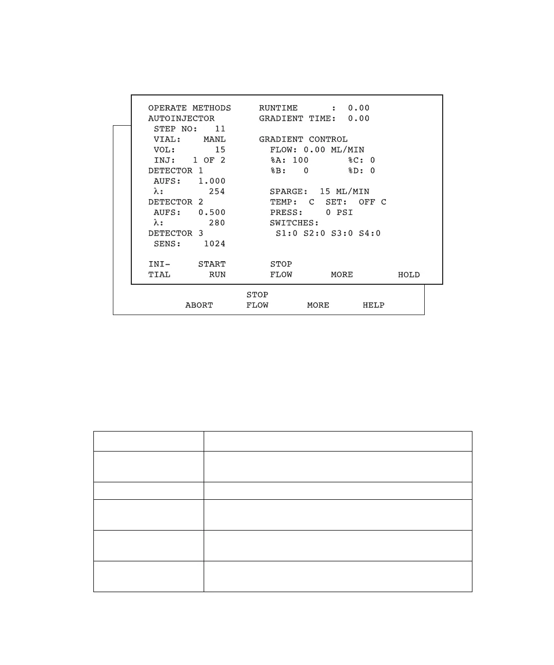 Start Run Starts the gradient and the run-time clocks at 0.00.