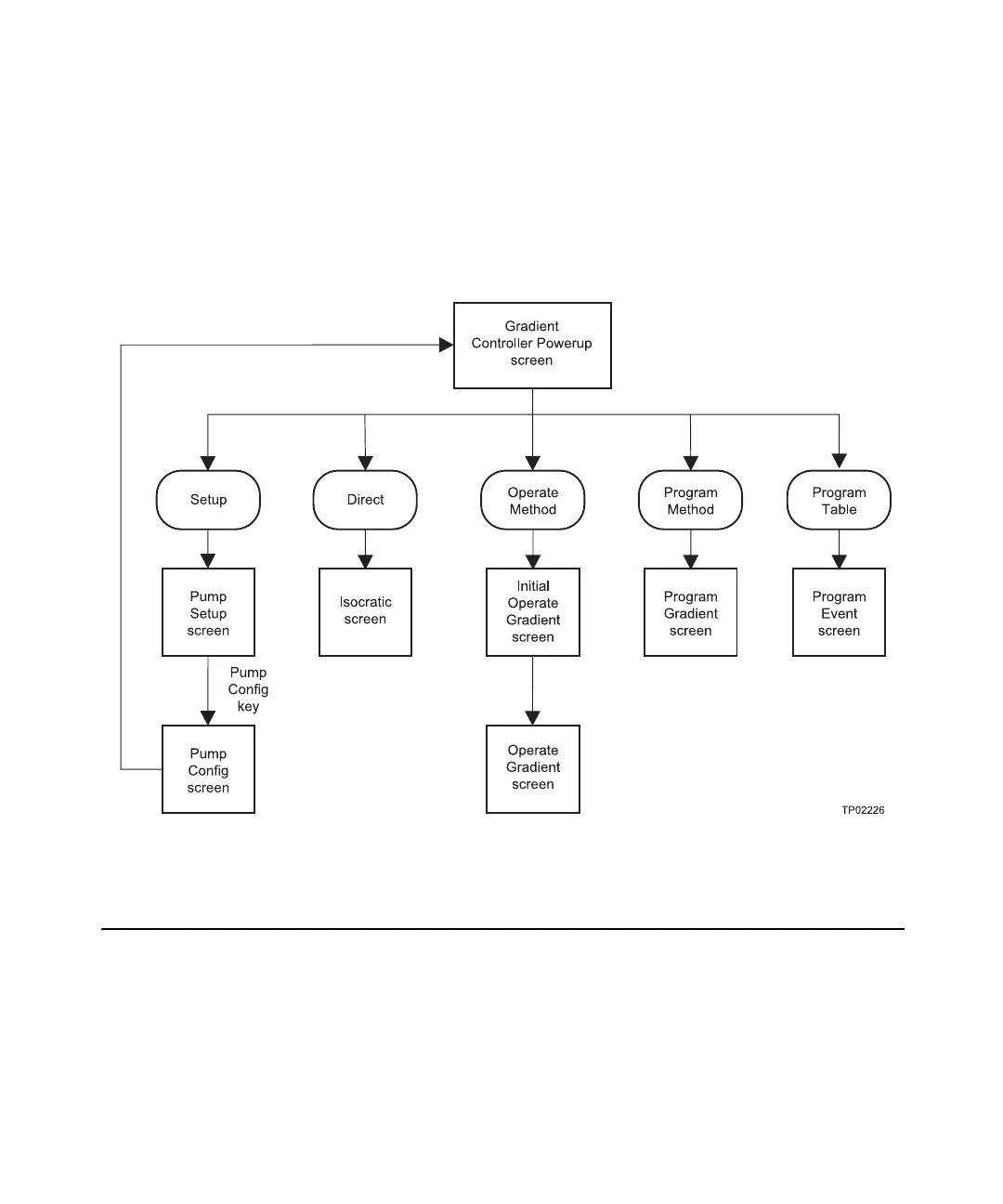 Figure 8-1 illustrates the relationships of the screens associated with the Waters 600