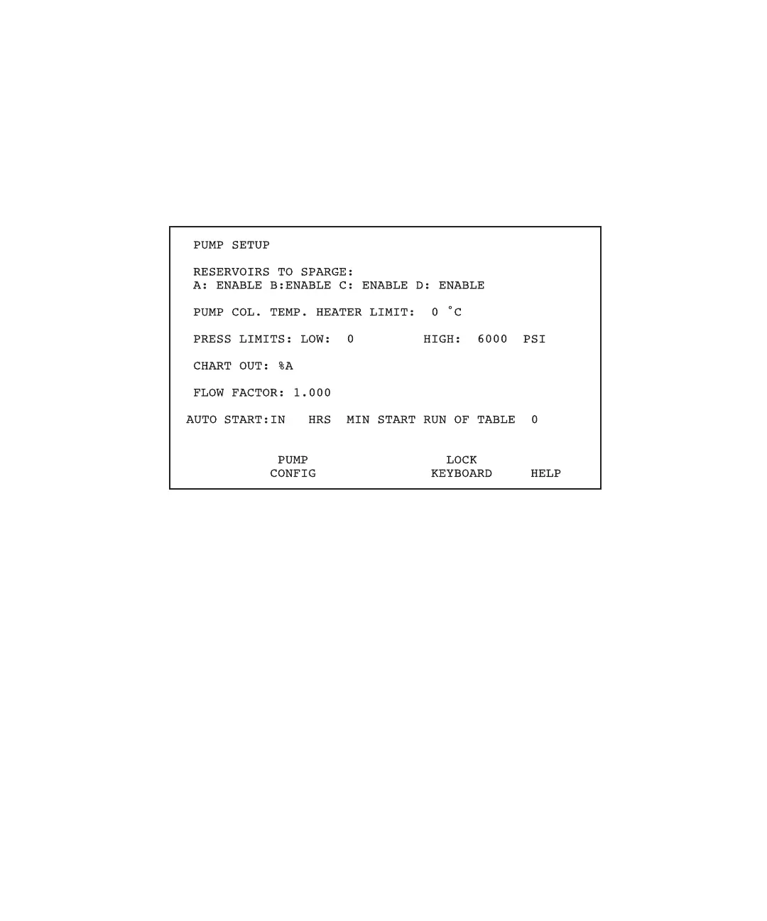 4. Press the Pump Config screen key to display the Gradient Controller Pump