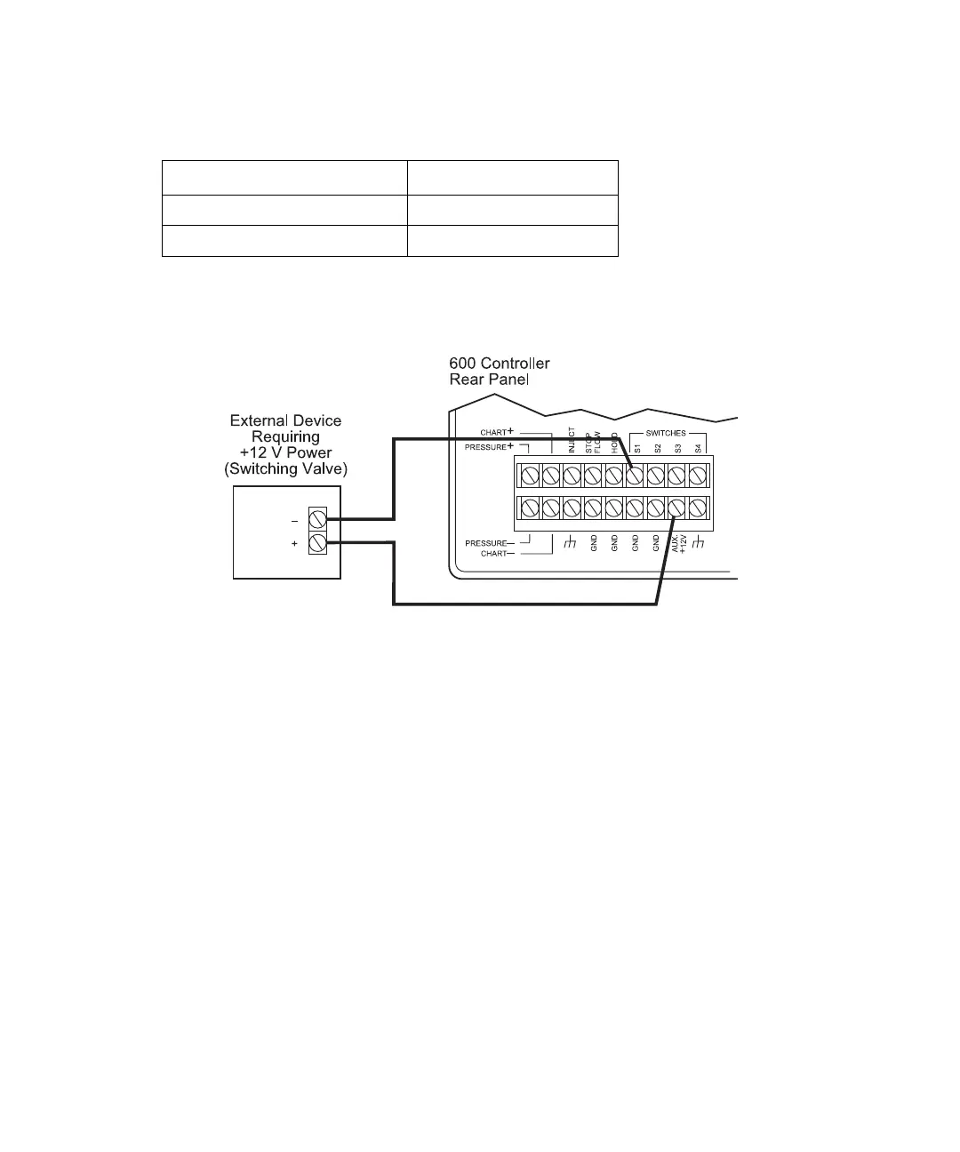 Figure 3-16 Connecting an External Device to the 600 Controller Aux +12 V and S1 Terminals