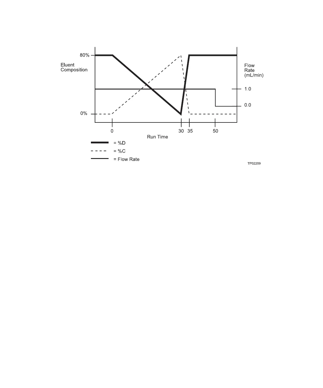 Figure 6-3 illustrates the flow, %C, and %D profiles for this gradient table.