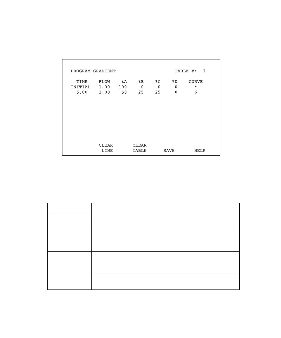 Table 10-1 Program Gradient Screen Keys