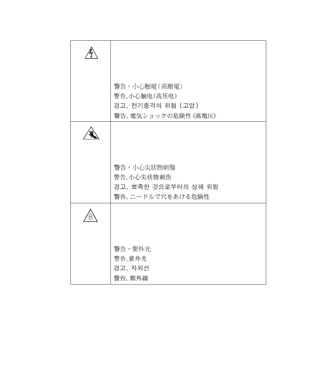 Caution, risk of electric shock (high voltage)