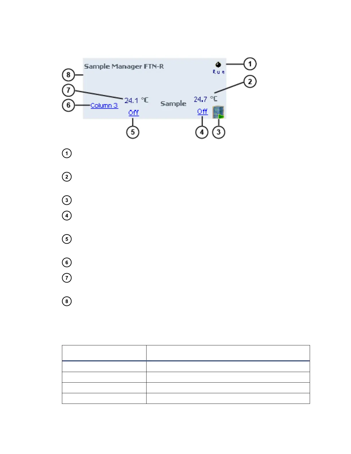 Current sample heater temperature – Displays the current temperature of the