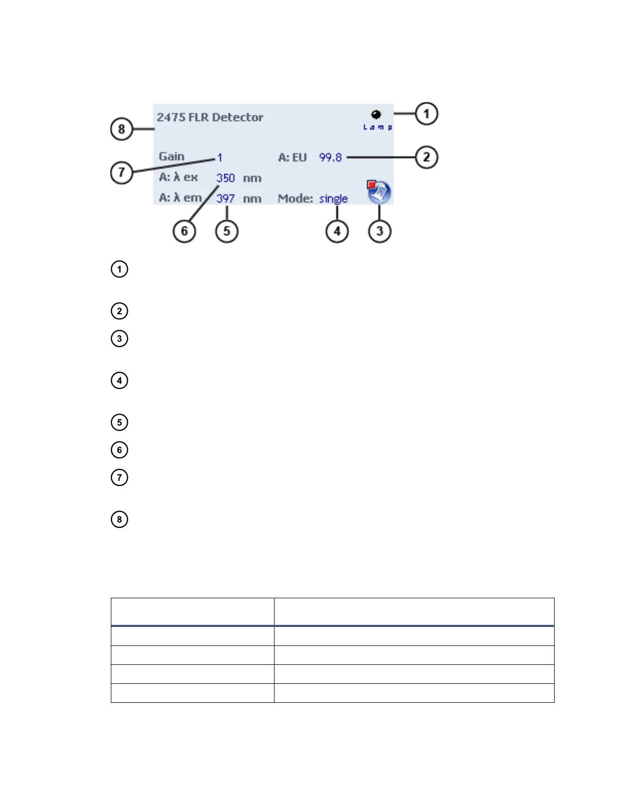 Table 3–9: Additional functions in the 2475 FLR detector control panel