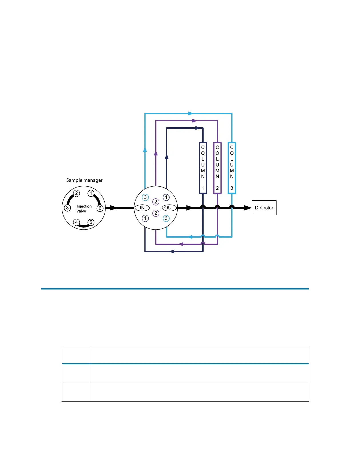 Figure 1–5: 3-position, column-selection valve flow diagram
