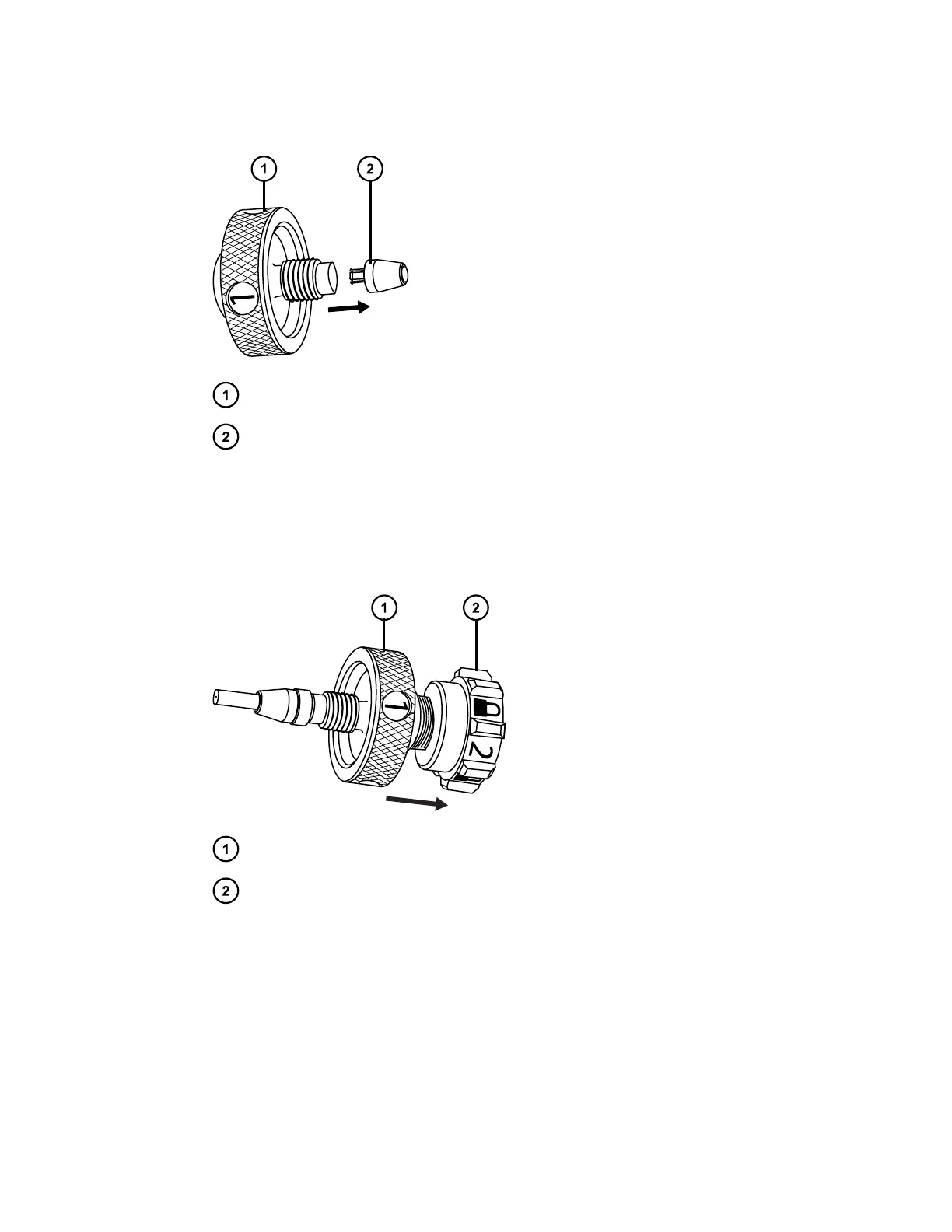 7. Screw the #2 locking cap nut onto the #1 knurled compression fitting.
